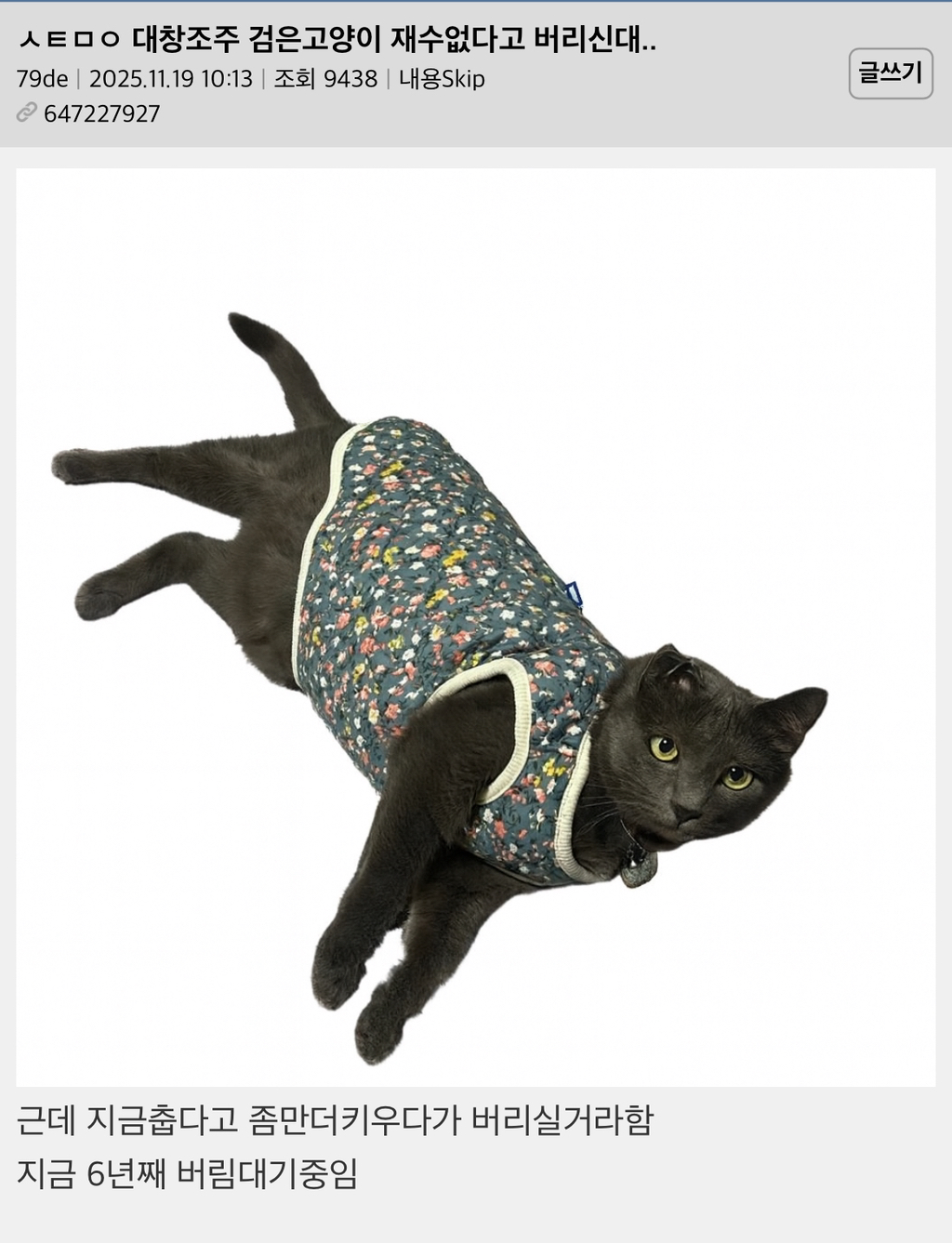 조부모님이 검은고양이 재수없다고 버리신대..